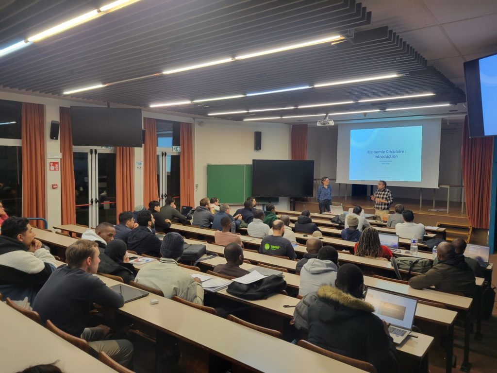 La semaine a débuté par une conférence consacrée à l’économie circulaire, présentée par Anne-Laure Castel, maître-assistante. Cette intervention a permis aux étudiants d’explorer les principes de ce modèle économique qui vise à limiter le gaspillage des ressources et à prolonger la durée de vie des produits.
